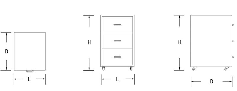 Tres cajones, riel incorporado - En la parte inferior del gabinete se instalan las ruedas