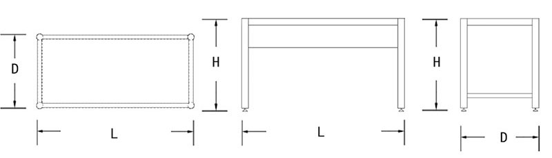 - Mesa para laboratorio con bastidor tipo H (con piernas redondeadas)